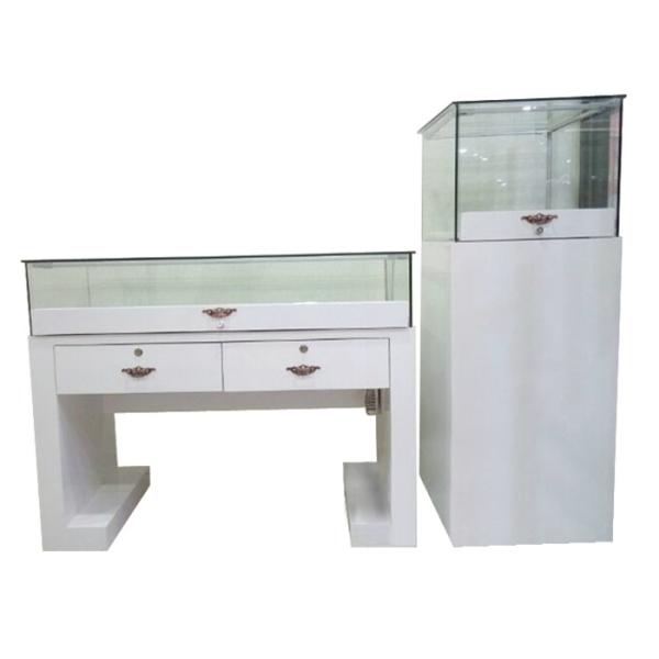 White Color Wooden Glass Display Cases Flat Pack Plinth With Glass Cabinet Images |